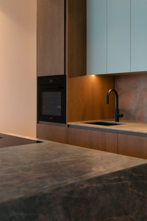 Leistungen: Interior Design der Küche, des Wohn- und Schlafbereichs, des Gästezimmers und des Arbeitszimmers; Neugestaltung des Flurbereichs inkl. individueller Einbauten; Beleuchtungskonzept; Farb- und Materialberatung; individuelles Küchen- und Möbeldesign von SW bespoke.